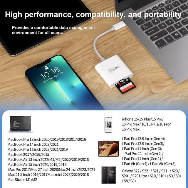 It supports OTG mode enabling you to manage your files anytime anywhereeven on the road or in the field. Whether youre on vacation at work or on the go transferring your memories takes just secondsno third-party app or computer required. High Compatibility From iPhone 15 to MacBooks and MoreCompatible with a wide range of USB-C devices including iPhone 15 series iPad Pro MacBook Galaxy Google Pixel and more. Supports SD SDHC SDXC MMC microSD microSDHC and microSDXC cards. Ideal for photographers content creators or anyone managing files across multiple platforms. On-the-Go Transfer Perfect for Travel and Outdoor UseDesigned with portability in mind this reader fits easily into your pocket or camera bag.