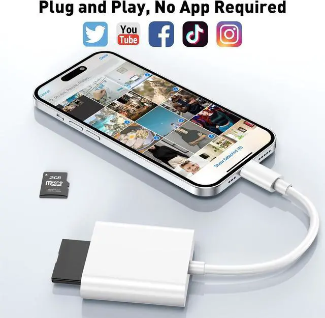 User-Friendly & Boosts ProductivityUANTIN SD Card Reader is the perfect photography accessory for digital cameras. No drivers requiredmanage files anytime anywhere. Simply insert your memory card connect to your iPhone for 5 seconds then tap the Photos app and select Import to effortlessly back up photos and important data significantly boosting productivity in both work and daily life. This is the ideal tool for photographers travelers students and business professionals. Broad Compatibility & Seamless ConnectionFully compatible with multiple Lightning-equipped devices including iPhone iPad and more; compatible with iPhone 14/14 Plus/14 Pro/14 Pro Max iPhone 13/13 mini/13 Pro/ 13 Pro Max iPhone 12/12 mini/12 Pro/12 Pro Max iPhone 11/11 Pro/XS/XS Max/XR/X/8/8 Plus/7/7 Plus/6s/6s Plus/6/6 Plus/SE/SE2 and iPad