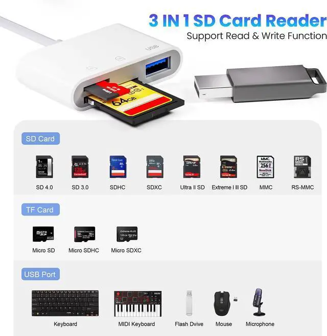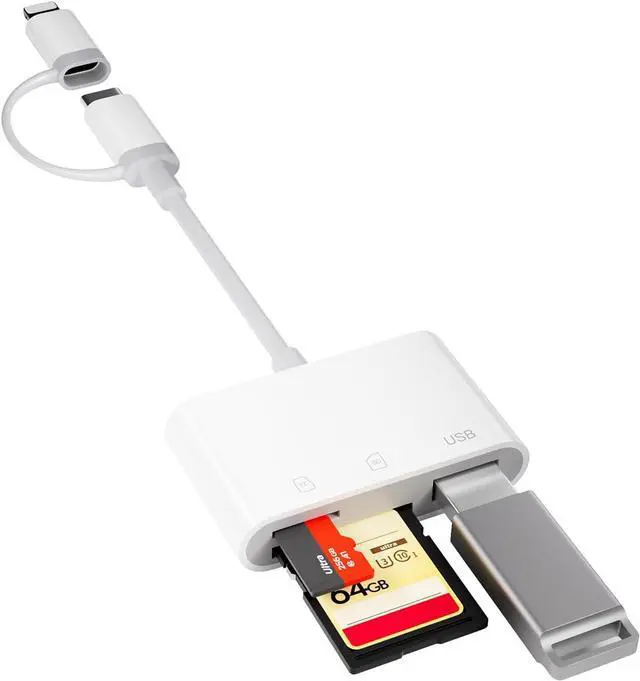 USB C to SD Card Reader for iPhone 15/16/17 Dual Connector (Lightning&USB-C) Lightning SD Card Reader for iPhone USB Adapter OTG Type C Memory Card Reader Camera Viewer for iPhone 14/13/8/7