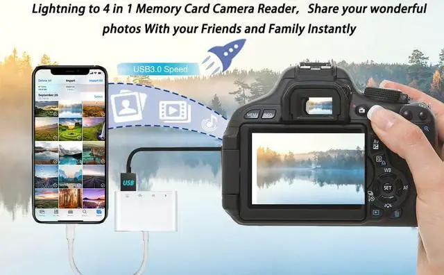 4-in-1 Assistant: The upgraded iPhone SD card reader has an SD card slot Micro SD card slot/USB port and a l? ghtn? ng charging port suitable for iphone and ipad charging and reading can be done at the same time. What you get1*Lightning to 4 in 1 Camera Connection KitSD card and Tf Card not includedand high standards of customer service.