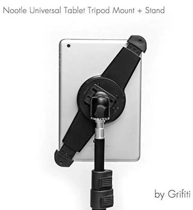 This is our lightweight stand... we make a bunch of different versions so check other listings, too! This our our new Grifiti Nootle Universal iPad and Tablet Stand! It includes our lightweight Nootle Stand with adjustable height to about 58 inches, Universal iPad and Tablet Tripod Mount, mini ball head.. A ton of companies, schools and coaches like this a lot! This is perfect for you if you want to use your iPad or Tablet on a simple stand or tripod with or without a case or skin on! This have a tight spring-loaded set of arms that will hold 7 to 11 inch tablets, including iPad mini 1, 2, 3, iPad Air 1, 2, iPad 1, 2, 3, 4, Google Nexus, Dell, Sony, Samsung Galaxy, Microsoft Surface, Google Nexus and any other tablet in that size range.