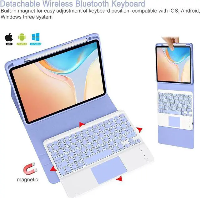 Eisuiyi Keyboard Case for iPad Pro11 1st/2nd/3rd/4th gen, Compatible with iPad Air 11" (M3/M2) /iPad Air5/Air4, Detachable Touchpad BT Keyboard, Magentic Protective Cover with Pencil Holder, Purple
