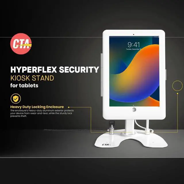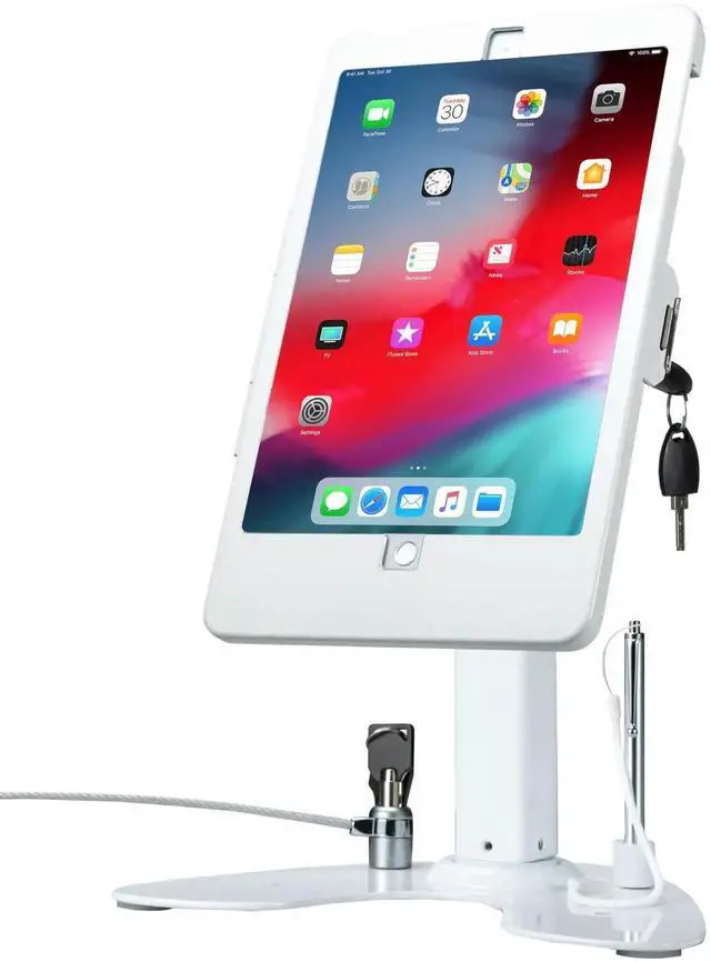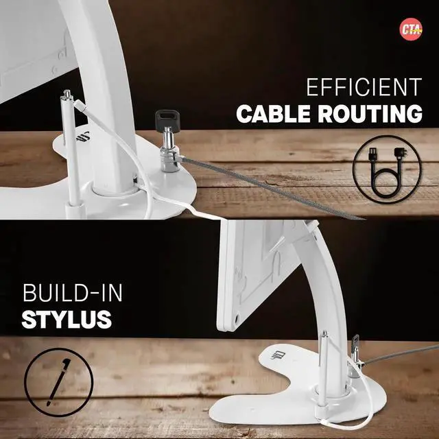 Dual Kiosk Stand CTA Security Stand with Locking Case, Cable, Stylus and Tether Compatible with Headphone Jack, iPad 7th/ 8th/ 9th Gen 10.2, iPad Pro 10.5 (PAD-ASKW10) White