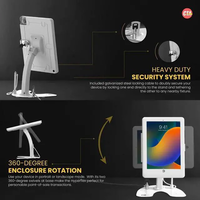 The 360-degree swivel base and tilting case let you easily switch between customer and register sides, with portrait and landscape options.