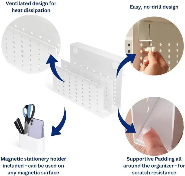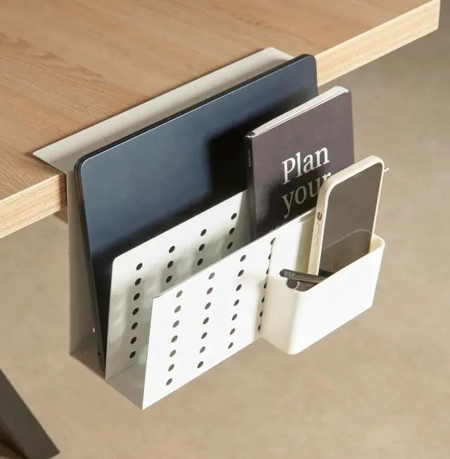 GAROOD Laptop Side Storage Vertical Stand Under Desk top Storage Clamp On Desktop Shelf Hanging Desk Organizer Computer Mount Side Table Organizer Caddy Book Caddy - Two Tier White