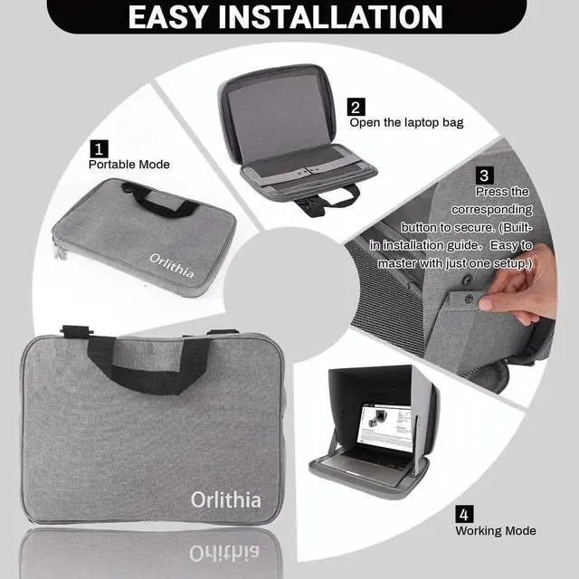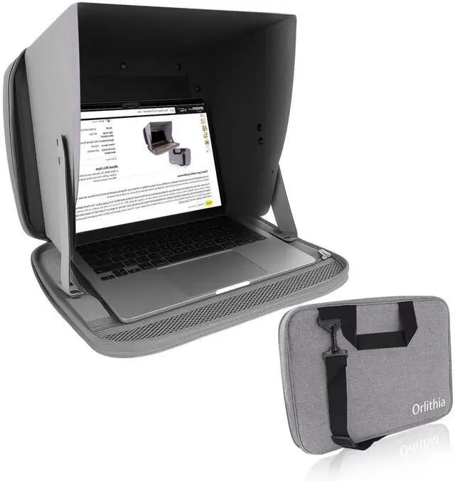 Laptop Sunshade and Privacy Screen 3-in-1 Design, Water Repellent Foldable Visor with Elastic PVC Core, Convertible Shoulder Bag for 12-14 Inch Laptops - Silver (Patent Pending)