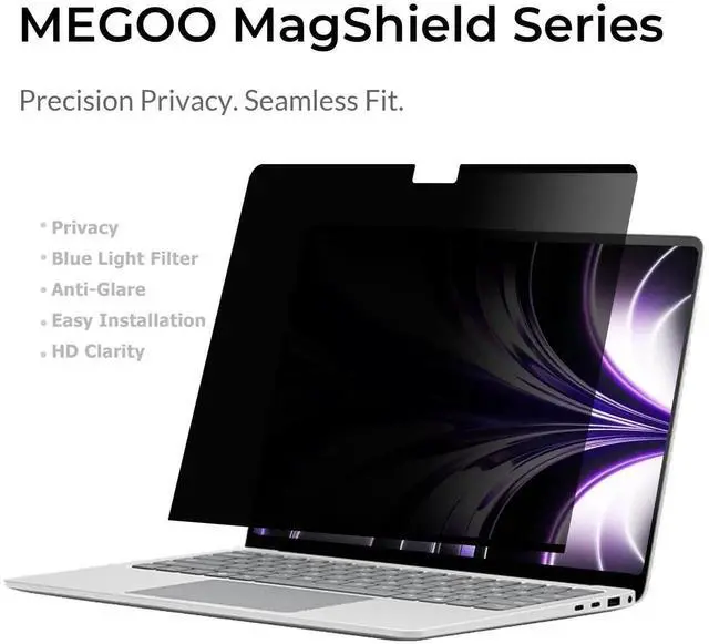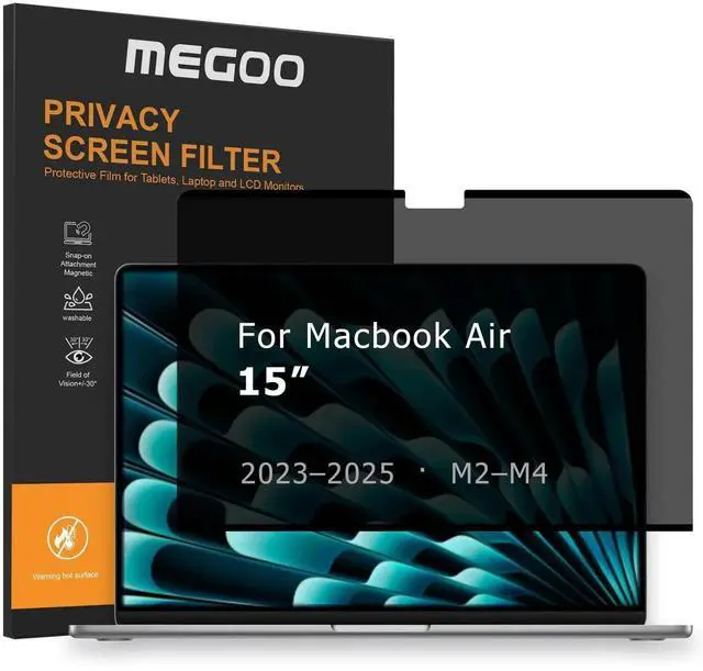Megoo Privacy Screen for MacBook Air 15 Inch, (2023-2025 / M2, M3, M4), 30° Viewing Angle, Blue Light Filter, Matte Finish, Anti-Glare Eye Protection Premium Business Protection