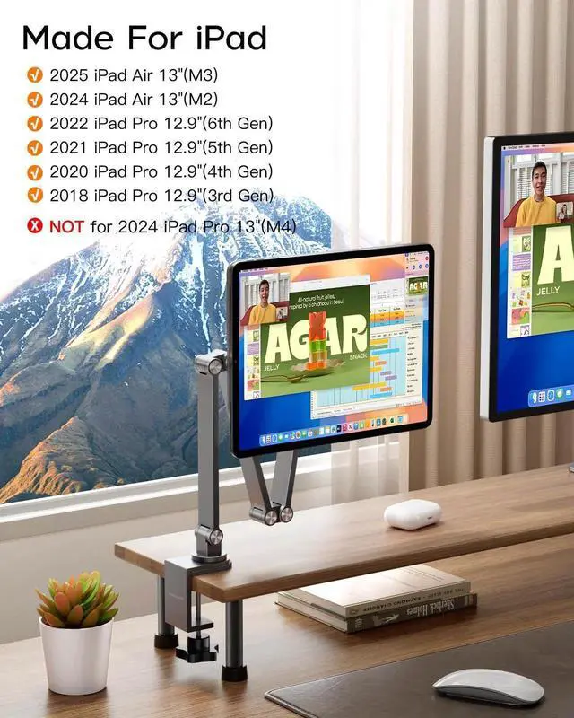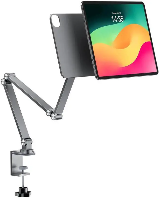 Engineered for Total Control: Bend joints to sketch flush at 0° tilt, or extend to 65cm for standing workflows. Our 4-joint arm system delivers precision rotation and tiltperfect for drafting, streaming, or collaborating. This iPad Arm Mount can collapses to Compact Form Engineered for Space Efficiency. Minimal mechanics, maximum versatilitywherever your iPad creates