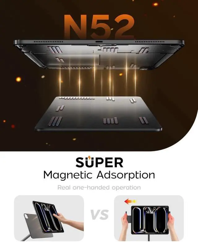 Stong Magnetic Snap: Multi-premium N52 magnets exactly match your iPad's built-in magnets, delivering 60% stronger hold than generic stands. Plus, anti-slip silicone pads prevent scratches. Forget clunky clam