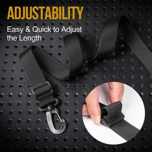 1" Shoulder Strap Replacement: Tactical black for a low-key yet solid wear for travels, commute, sports, etc. Lightweight yet comfortable, and can be rolled up for easy carry. Adjustable length for carrying on one shoulder or across the chest. Mini carabiner clips for clipping onto your gear. High-quality Nylon construction for extra durability. Dimensions: 58.5 x 1 x 0.04 inches.