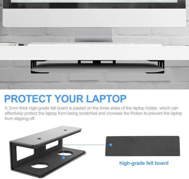 Protect your laptop-- 2mm thick high-grade felt board is pasted on the three sides of the laptop holder, which can effectively protect the laptop from being scratched and increase the friction to prevent the laptop from slipping off.