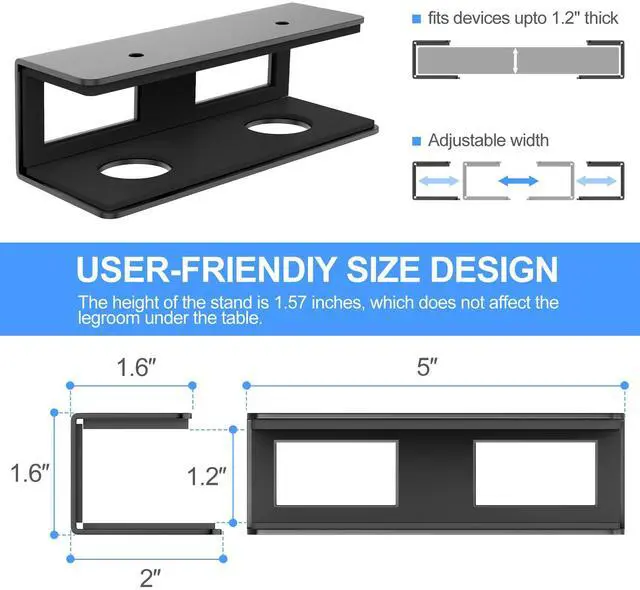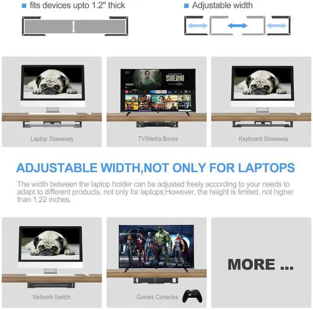 Adjustable width, not only for laptops-- The width between the laptop holder can be adjusted freely according to your needs to adapt to different products, not only for laptops; Height fits laptops up to 1.5" thick.
