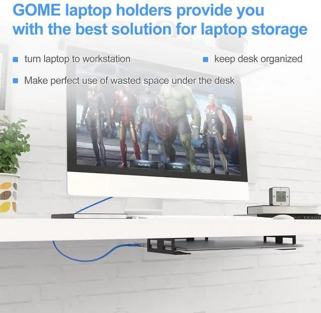 The best solution for laptop storage-- The best solution for a laptop as workstation makes full use of the wasted space under the desk, not only for storage, but also for easy cable running and laptop cooling.