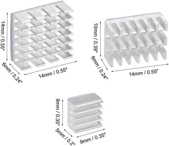 Package Content: 2 x Size 1 Heatsink2 x Size 2 Heatsink2 x Size 3 HeatsinkTotal 6 Pieces