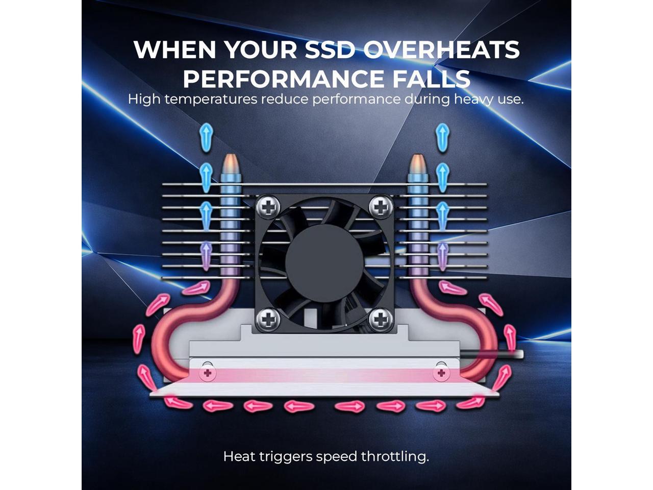 NITRO PRO can reduce temperatures by approximately 30°C - 40°C, varying depending on the environment. Additionally, it can cool around 10°C - 20°C more compared to heatsinks without a fan. This SSD heatsink M.2 NVMe ensures your M.2 NVMe solid state drive stays cool during intense gaming sessions or heavy PC workloads.