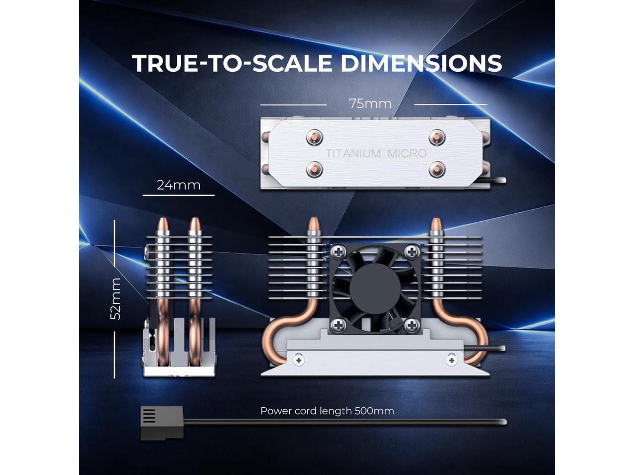 Titanium Micro Nitro Pro M.2 NVMe Heatsink, 2280 Dual Cooler Heatsink with 30mm PWM Fan