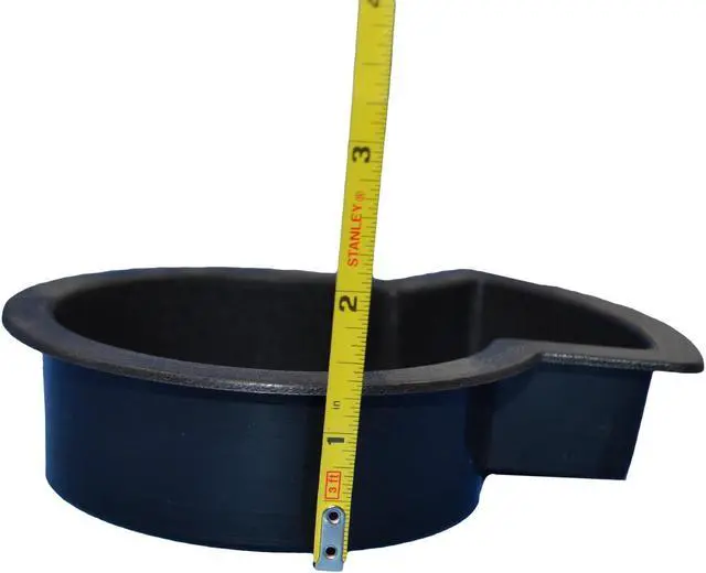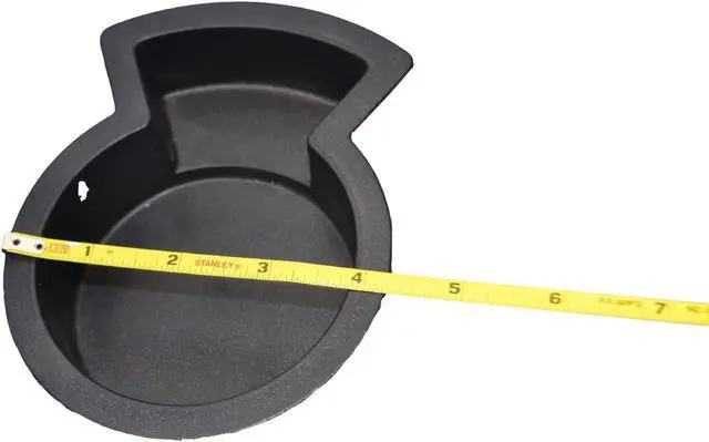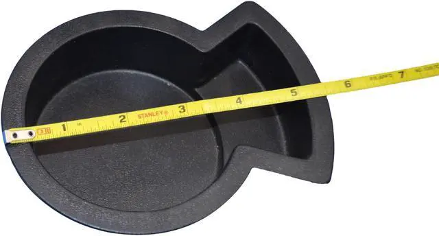 Recliner-Handles brand replacement cup holder will restore the appearance of a recliner or sofa with cup holders have become worn. This cupholder's key-shaped mold is designed to allow mugs, steins, and other handled cups to be held along with normal canned or bottled drinks, allowing you to enjoy your cup of coffee from your chair or sofa. This item needs to be inset into a matching key shaped cavity- the larger circle has an outside diameter of 4 1/5 inches and an inside diameter of 3 2/5, and the extended slot for the handle is 2 inches at the base, and 3 inches at the end.