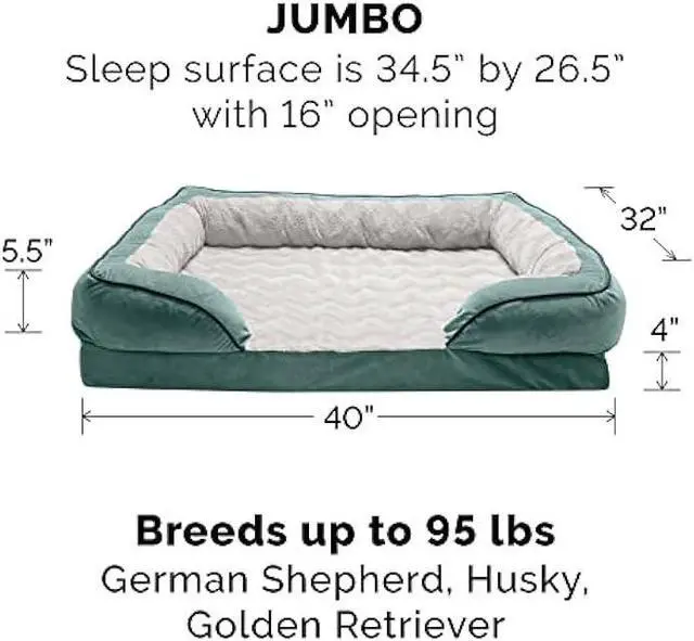 PRODUCT DETAILS: Orthopedic Dog Bed, Celadon Green; Jumbo - 40 x 32 x 9.5 (4 Base Foam Height;