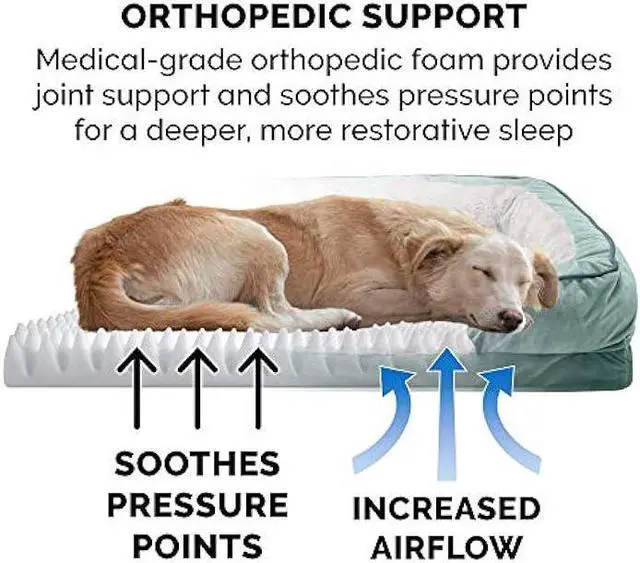 EASY ON JOINTS: The egg crate orthopedic foam base helps cushion pressure points and improve air circulation, while fluff-filled bolsters support the neck, back, hips, and joints; helps ease discomfort and promote restful sleep
