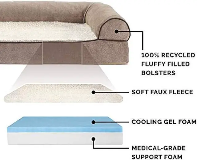 EASY ON JOINTS: The gel top helps whisks heat away and contours to your pet's figure to cushion pressure points and improve body alignment; fluff-filled bolsters support the neck, back, hips, and joints to help ease discomfort and promote restful sleep