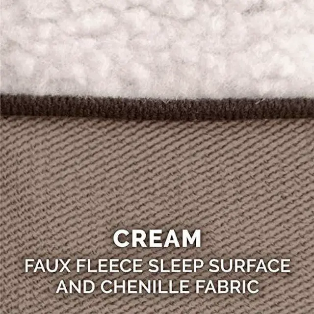 SLEEP SURFACE: Featuring a cozy and insulating sherpa main sleep surface and bolsters wrapped in cuddly soft chenille; both are gentle on noses and paws for enhanced snuggling and burrowing comfort