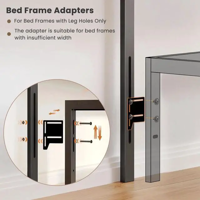 Adjustable Height: This twin headboard offers an adjustable height range from 37 to 51 inches, accommodating various mattress and box spring combinations, and includes a bed frame adapter for frames with leg holes.