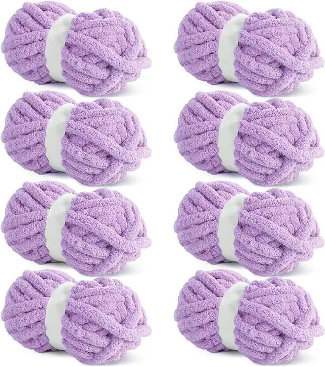 HOMEWCLA 8 Pack Chunky Chenille Yarn - Super Soft Bulky Knitting Yarn for Blankets Scarf DIY, 8oz/27yds per Skein, Fluffy Plush Yarn for Crochet & Hand Knitting