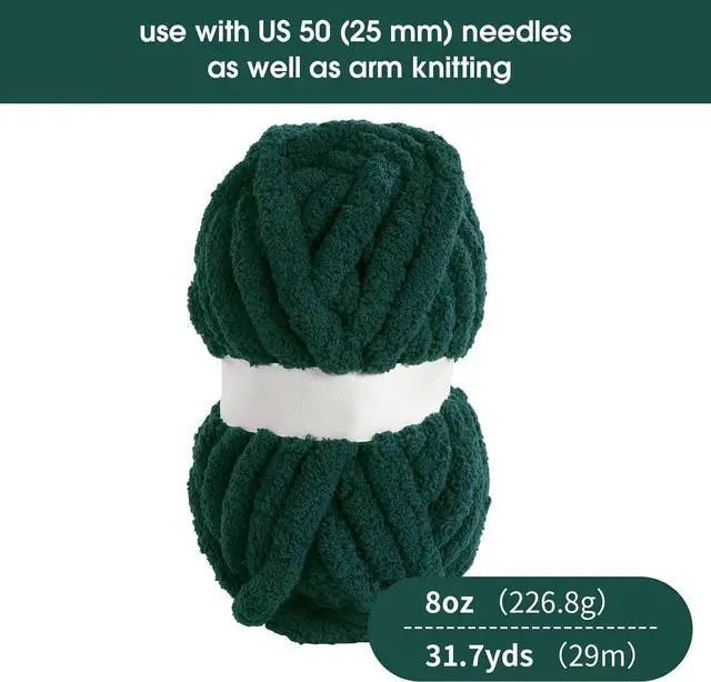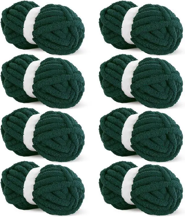Tanvia 8 Pack Chunky Chenille Yarn - Super Soft Bulky Knitting Yarn for Blankets Scarf DIY, 8oz/27yds per Skein, Fluffy Plush Yarn for Crochet & Hand Knitting, Dark Green