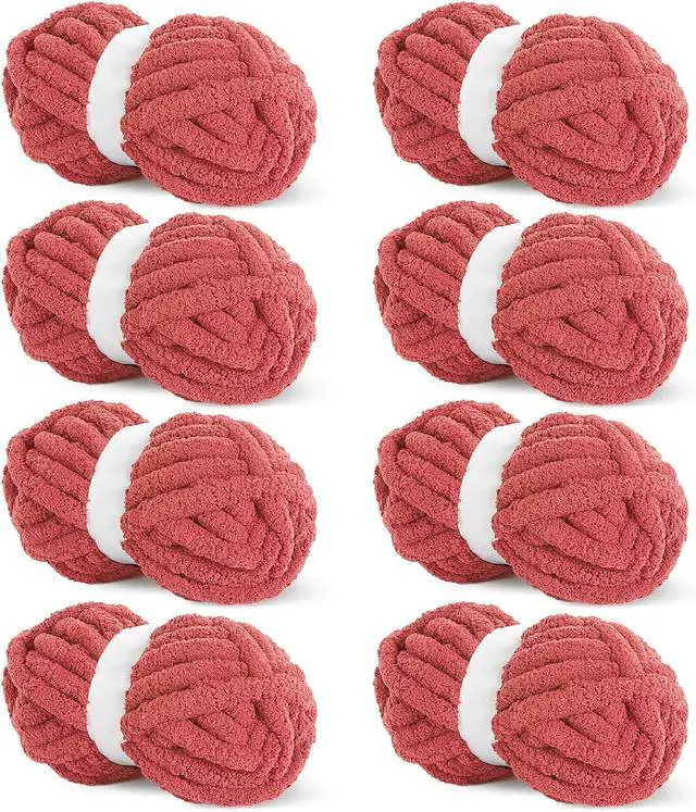 Tanvia 8 Pack Chunky Chenille Yarn - Super Soft Bulky Knitting Yarn for Blankets Scarf DIY, 8oz/27yds per Skein, Fluffy Plush Yarn for Crochet & Hand Knitting, Red