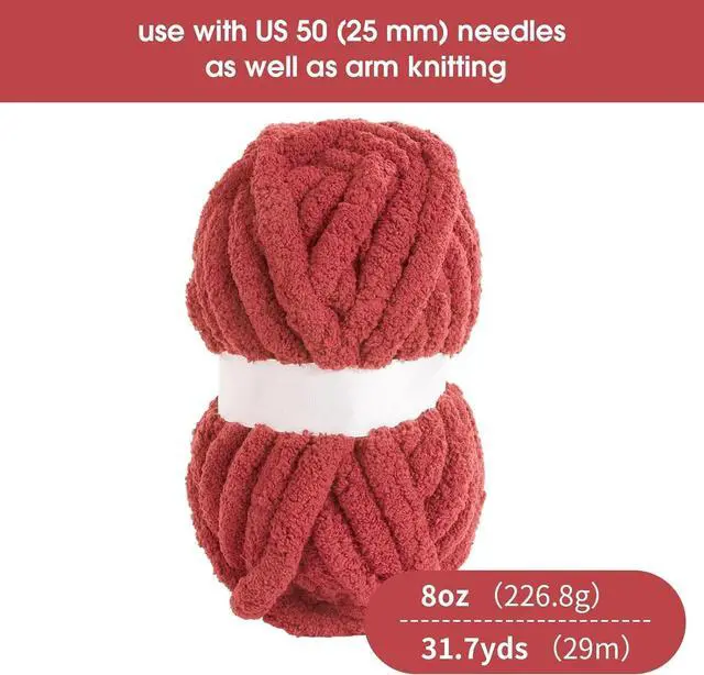 Jumbo Yarn - Each skein weighs 8 oz/ 226.8 g and the length is 27 yds / 25 m. The diameter of this Chenille Chunky Yarn is approximately 3/4". Knitting Gauge: US 50 (25mm), 2.5 sts - 2.5 rows = 4(10cm) Crochet Gauge: US 50 (25mm), 2.5 sc - 2.5 rows = 4(10cm)
