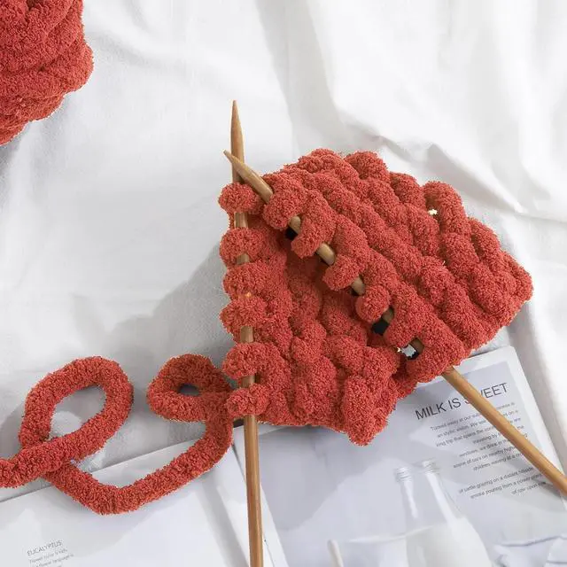 Chunky Chenille Yarn - Chunky Chenille Yarn is super cozy and fluffy, almost as thick as super chunky Merino wool but much lighter and softer! a classic chioce of all your knitting craft projects, the huge yarn maintains a stylish chunky & cozy appearance with the added benefit of being light in weight, thickly to be easy to use.