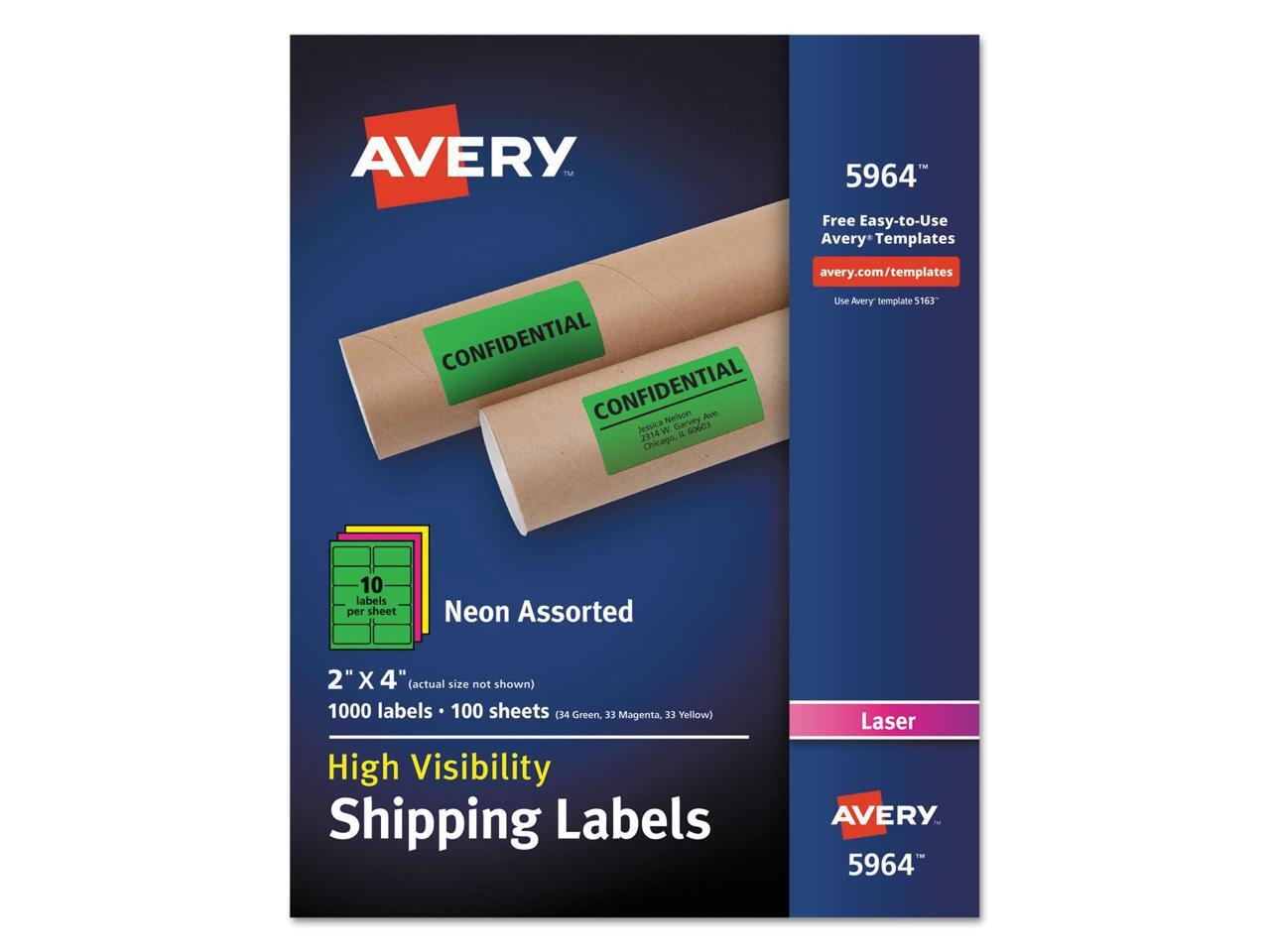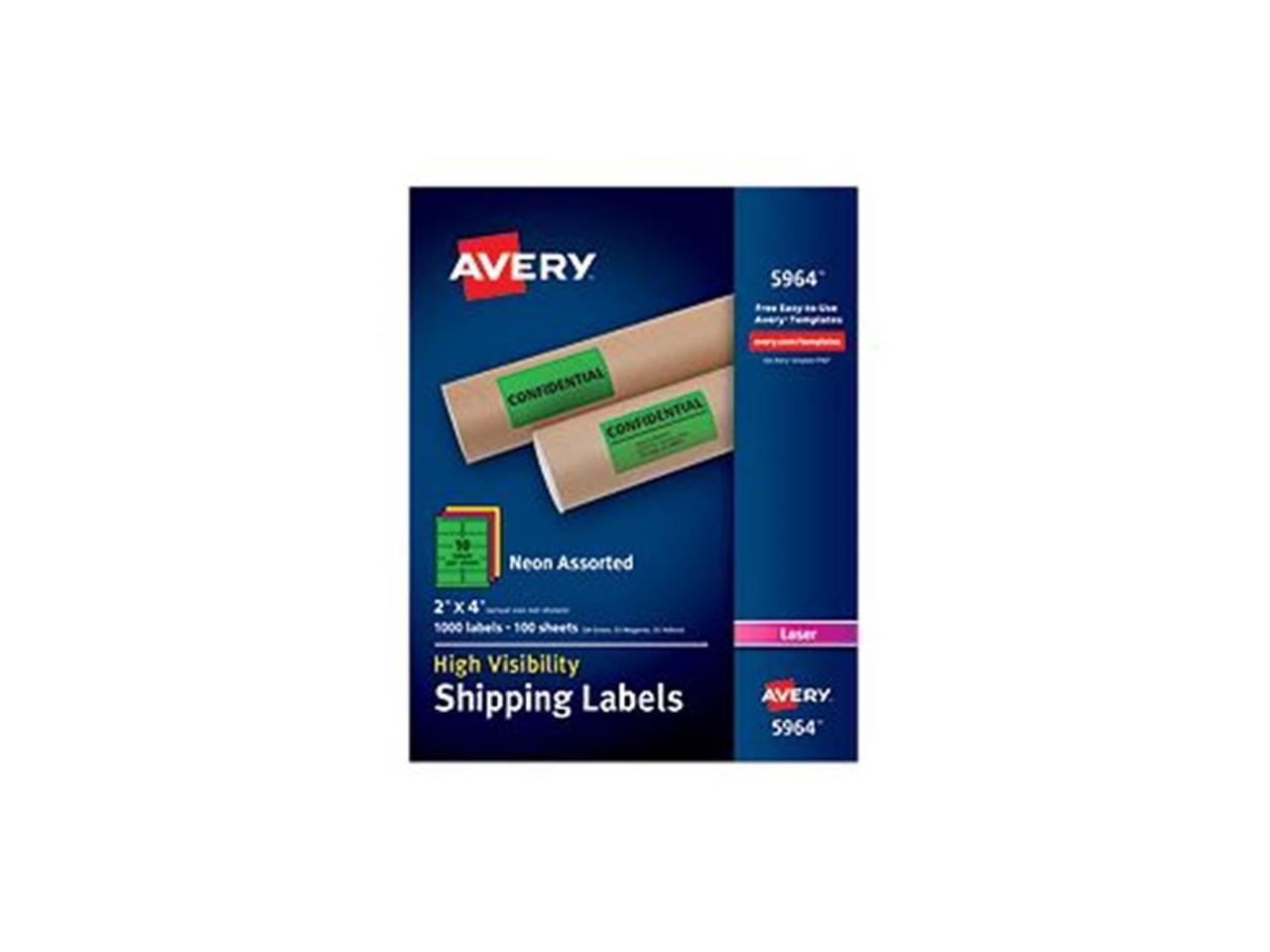 Avery Neon Shipping Label Laser 2 x 4 Neon Assorted 1000/Box 5964