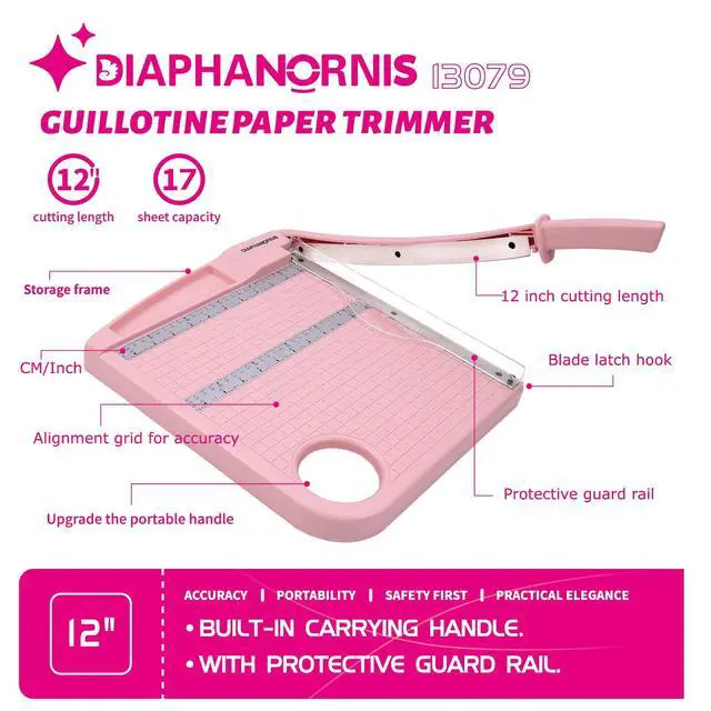 DIAPHANORNIS Paper Cutter, a masterpiece of design, offers you ideal cutting capacity and practical paper-cutting solutions with safety for multiple purposes of use. From cutting tools to everyday office supplies, DIAPHANORNIS brings products ideal for home and small office work for teachers, designers, hobbyists, and more. We value your feedback and want nothing stops you from having an amazing experience.