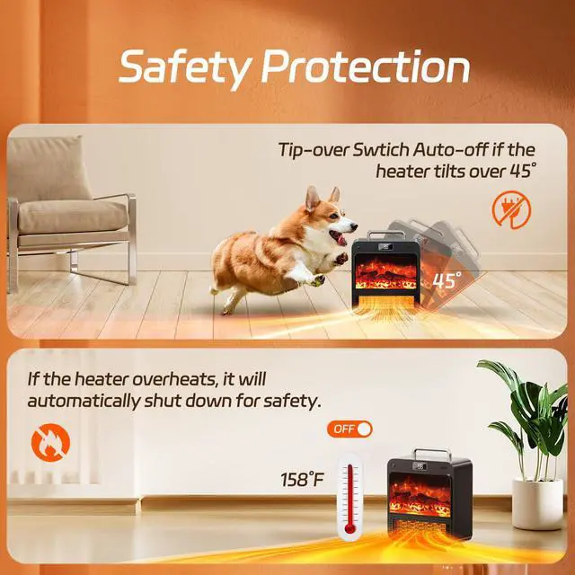 Feculs 3D Flame Fireplace Space Heater Indoor
