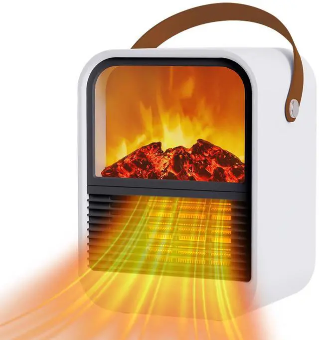 Electric fireplace heater features 3D flame effects and realistic burning charcoal embers, creating the ambiance of a real fireplace.