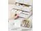 VLANDO Makeup Organizer Countertop,Large Vanity Organizer PU Leather Make up Storage with 4 Drawers Perfume Organizers Skincare Organizer Cosmetic Display Case for Lipstick,Brushes,Bedroom-White