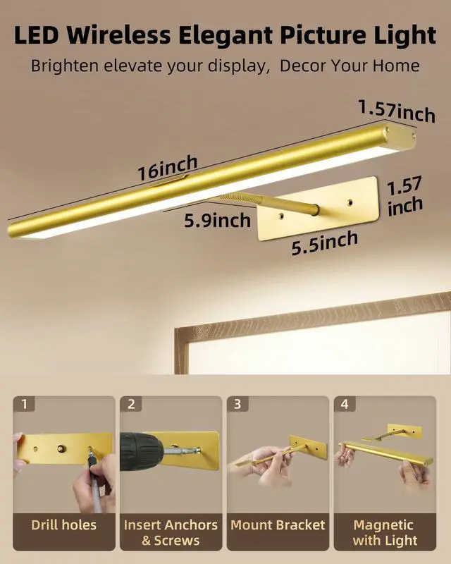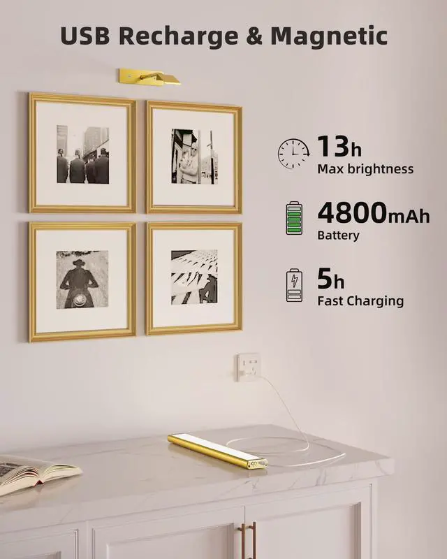 Cordless & Rechargeable wall light-Built-in 4800mAh battery for up to 13 hours of lighting—no wires, no mess!