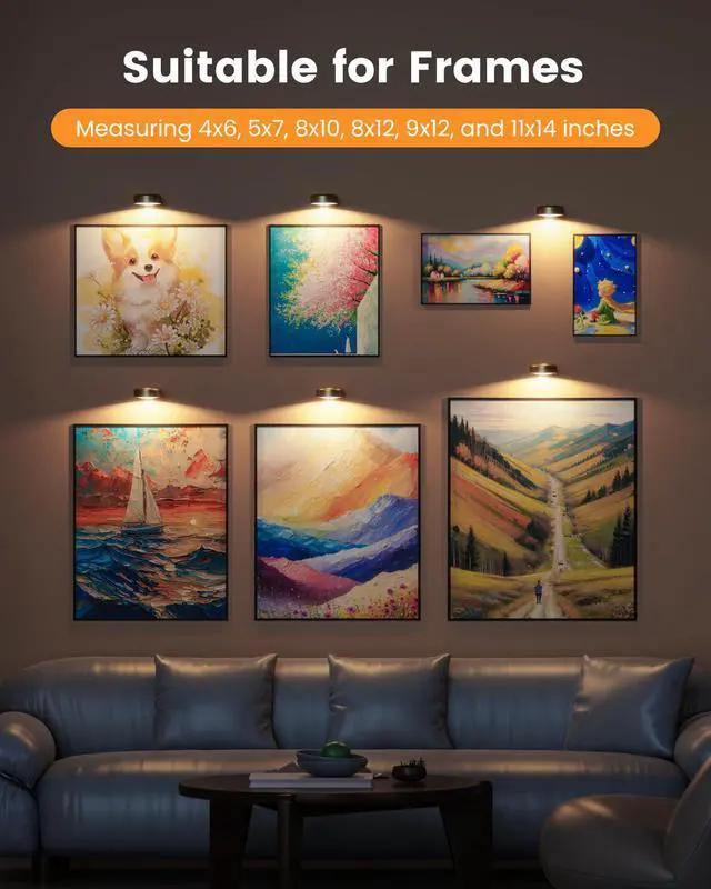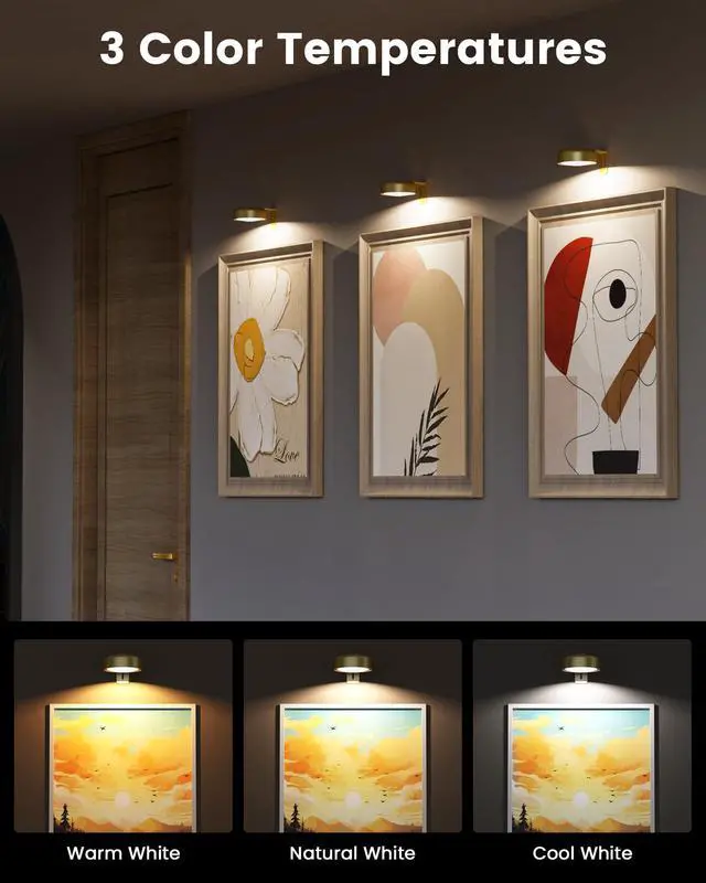 3 Color Temps & 12 RGB & 2 Dynamic ModesIlluminate your artwork and space with the ERMTCTS rechargeable picture light. It offers versatile lighting with 3 adjustable color temperatures (3000K, 4200K, 6500K) and 12 vibrant RGB colors. Choose from two dynamic modes Perfect for daily ambiance and festive occasions, this gallery light adapts to your every need