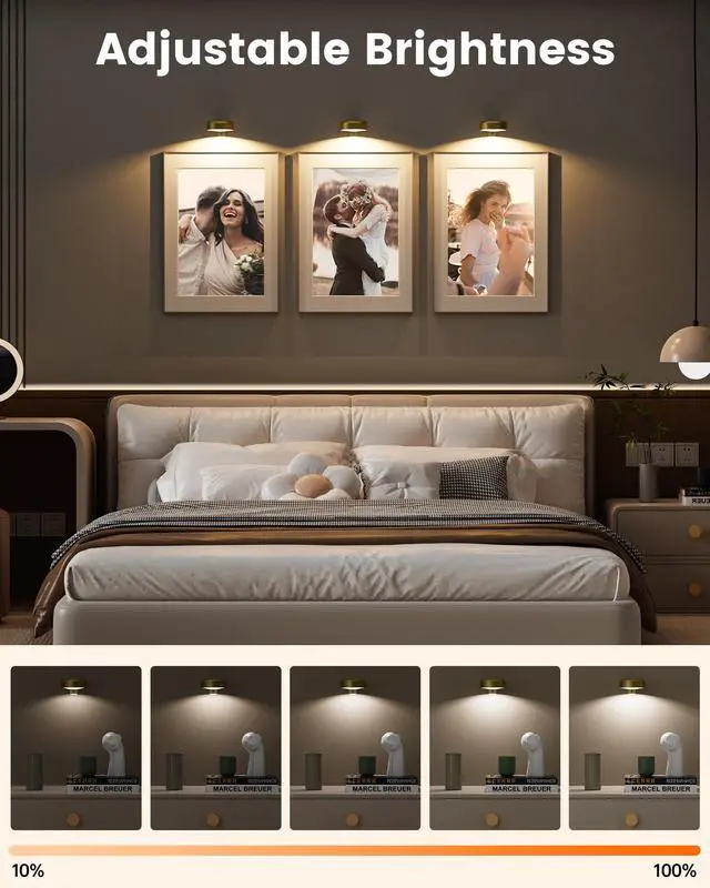 Quick InstallationWe understand the pain point needs of users, so we equip you with magnet sheets, double-sided adhesive and screws. The picture light can be used flexibly (removable). Installation is very easy, no tools and wiring required, will not damage the wall. If you feel that the installation with double sided tape is not strong, you can use sturdy screws to install it
