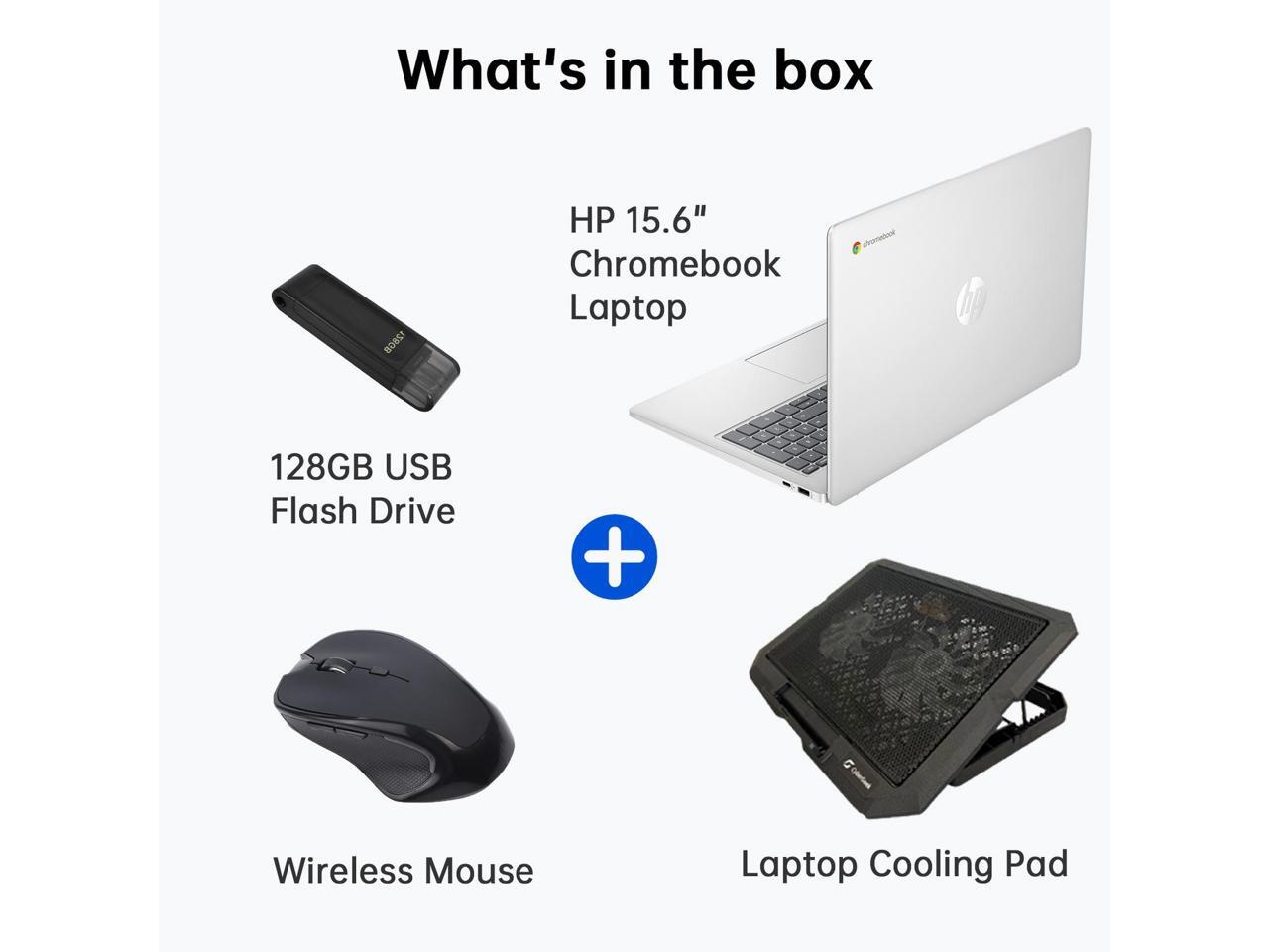 HP 15.6" Chromebook Student Laptop, Intel Processor N200 (Up to 3.7GHz) , 8GB LPDDR5, 64GB eMMC+128GB USB Flash Drive, Lightweight Computer for College Students, Cooling Pad+Mouse, Chrome OS