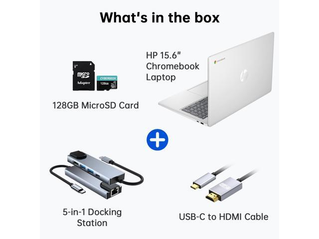 HP Chromebook 15.6" Lightweight Laptop, 4-Core Intel Processor N200 (Beats N6000), 8GB LPDDR5 RAM, 64GB eMMC Storage + 128GB MicroSD card, Numeric Keypad, Wi-Fi 6, Hub+USB-C to HDMI Cable, Chrome OS