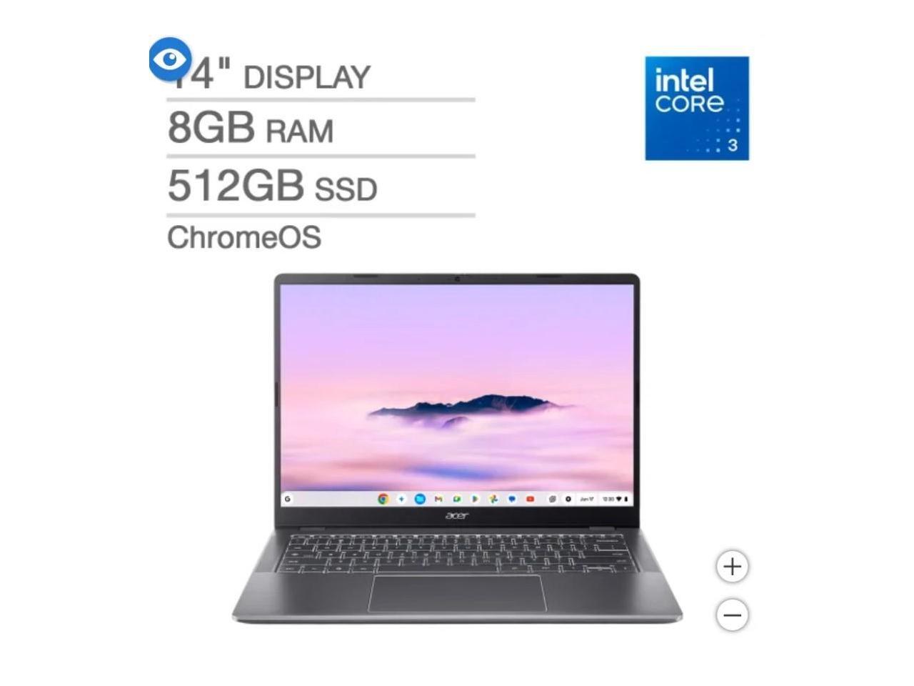 Acer Chromebook Plus 514 14 Touchscreen Laptop with Google AI Intel Core 3 processor N355 1920 x 1200 - Chrome OS - 8GB RAM 512GB SSD