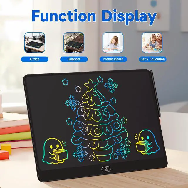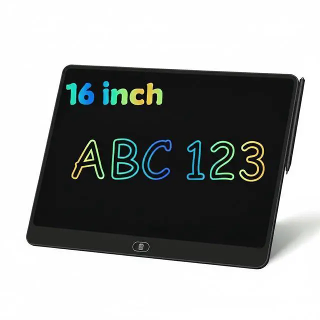 16 Inch Large ScreenThe 16 inch Drawing Tablet's large colorful screen is absolute delight. The large size is excellent for toddlers use their imagination and make big drawings.It is also a great product for anyone of any age! It allows kids to draw, doodle, and write with an array of vibrant colors, offering an immersive and fun experience.