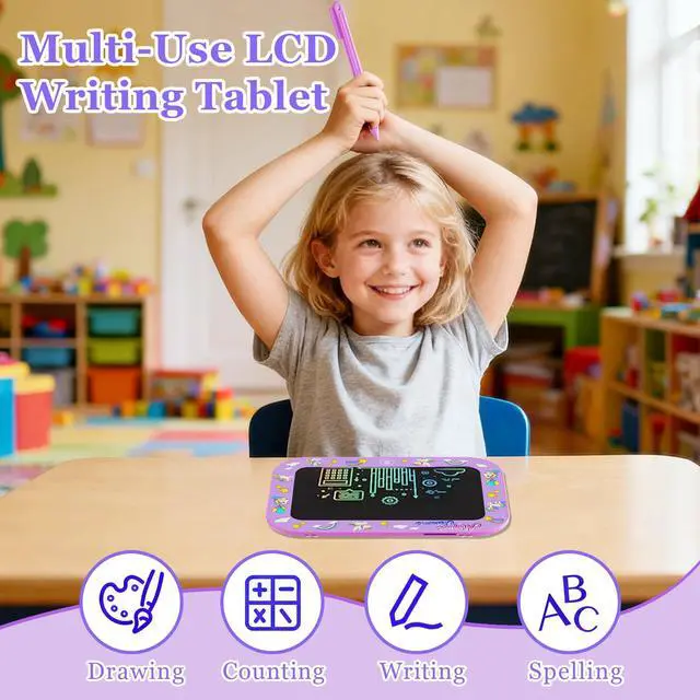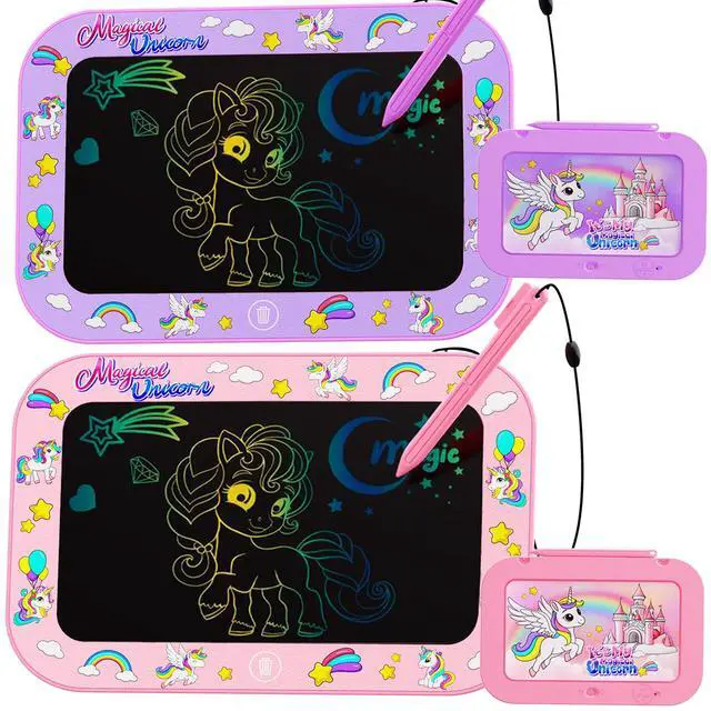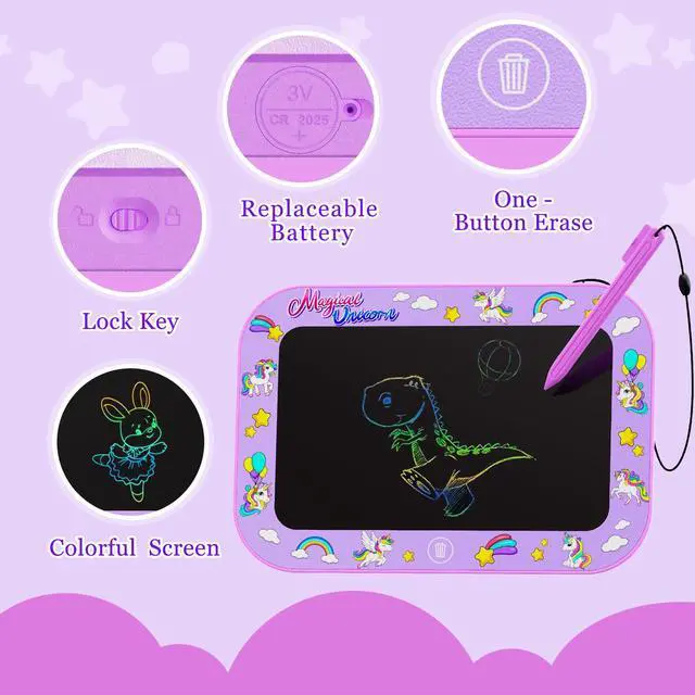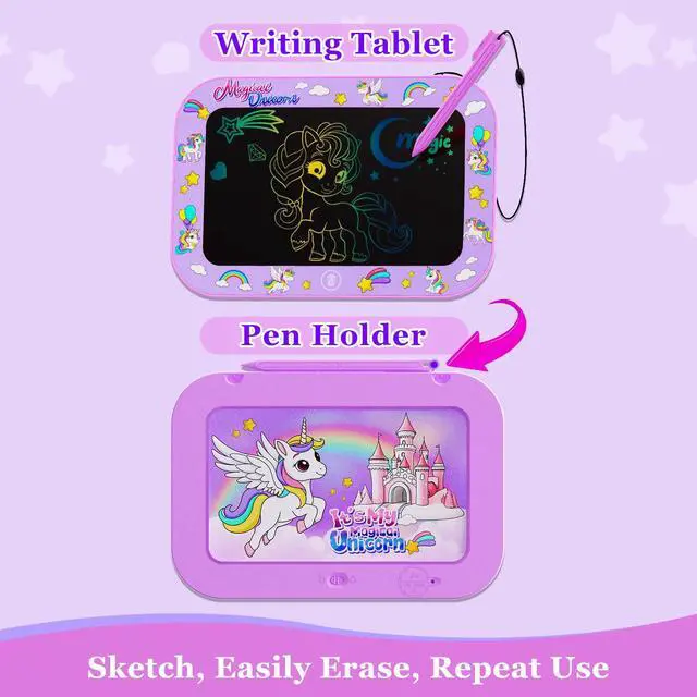 Unicorn Theme LCD Writing Tablet - Our drawing tablet features unicorn dinosaurs unique style with 10-inch LCD colorful screen , easy to view and graffiti, inspire kids imagination. This kids drawing tablet without radiation, no glare, safe and comfortable, even after using a long time. it is an ideal learning education kids toys for 3 4 5 6 7 8 years old girls boys