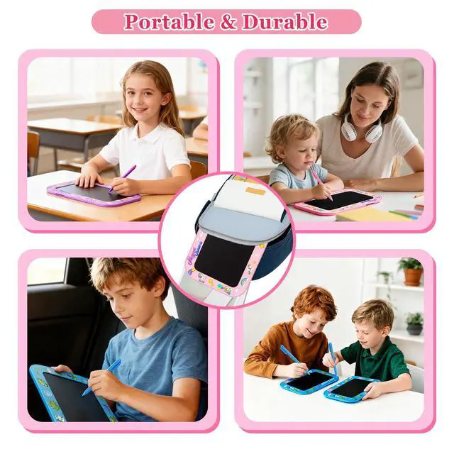 Durable and Portable - The cover of kids drawing board is made of durable plastic, with round corner design which has good shock resistance and drops resistance. the weights only 150 grams, easy to carry anywhere such as for airplane toys, car activities, travel games accessories. LCD Writing Tablet allows kids to quietly immerse themselves in the drawing world. it is great travel toys for kids toddlers.
