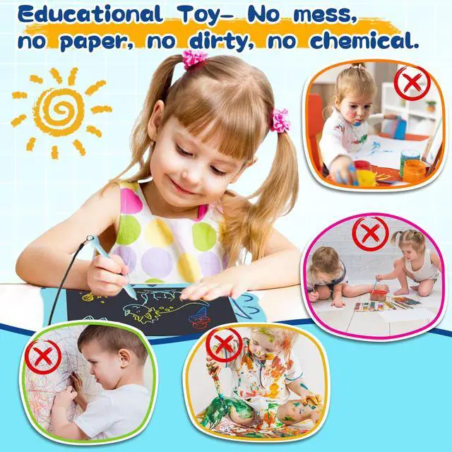 Portable toys for toddlers drawing tablet: These writing tablet toys bring children's imaginations to life effortlessly. The lightweight and portable design of the kids drawing pad make it perfect for on-the-go entertainment. Compared with traditional paper and drawing tools, our colour LCD drawing tablet for kids do not require the use of paper, ink or paint. This not only saves resources, but also avoids paper waste and ink pollution. Suitable for boys and girls aged 3 4 5 6 7 8 years old