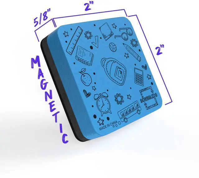 Magnetic Backing Strong magnetic dry erase eraser design sticks securely to any magnetic whiteboard, refrigerator, or locker so your eraser is always within reach.