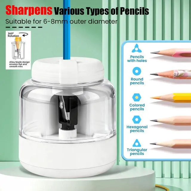 Suitable for All Types of Pencils: The ZQS automatic pencil sharpener is suitable for colored pencils and traditional graphite pencils, including round, triangular, and hexagonal pencils, as well as art pencils. Suitable for classrooms, libraries, homes, offices, and various other settings.