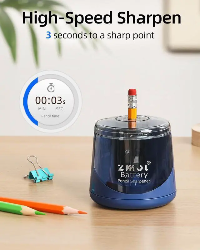 This ZMOL electric pencil sharpener is lightweight and portable. It can be powered either batteries.It is suitable for a wide range of scenarios, such as home, school, office and outdoor use.It is easy to operate and safe to use.