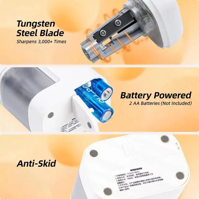 Portable Battery Operation: This battery powered pencil sharpener runs on 2 AA batteries (not included). Compact size fits backpacks and crowded desks